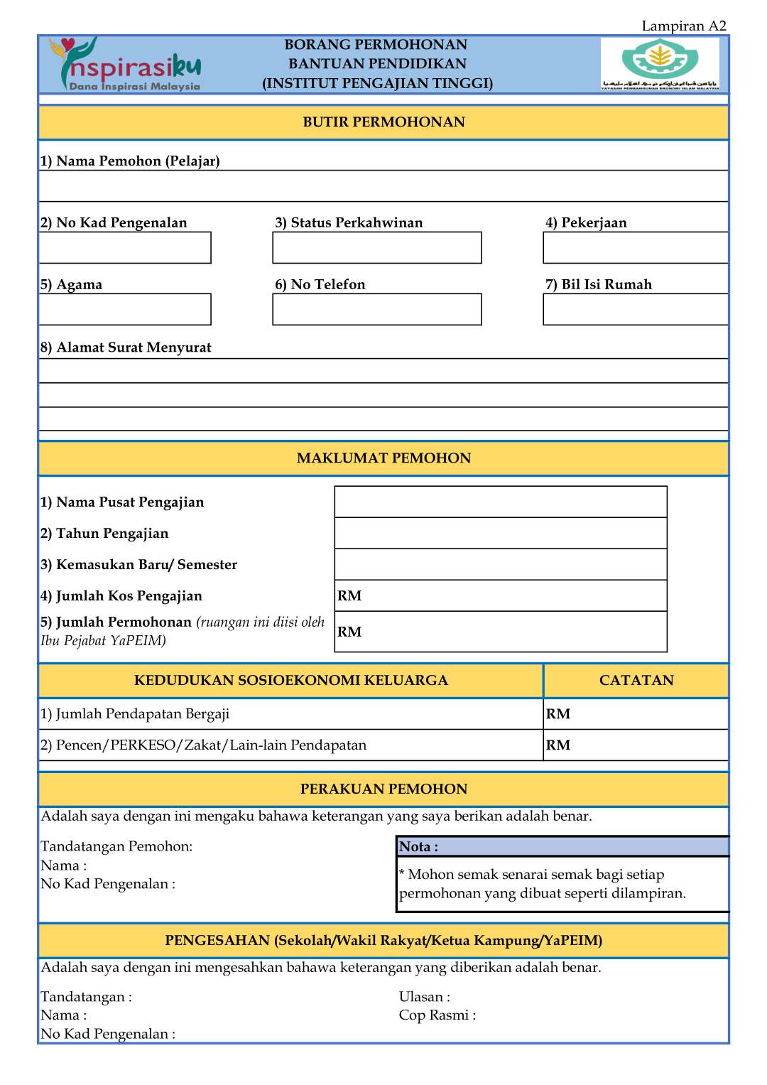 BORANG PERMOHONAN DANA INSPIRASIKU PELAJAR IPT