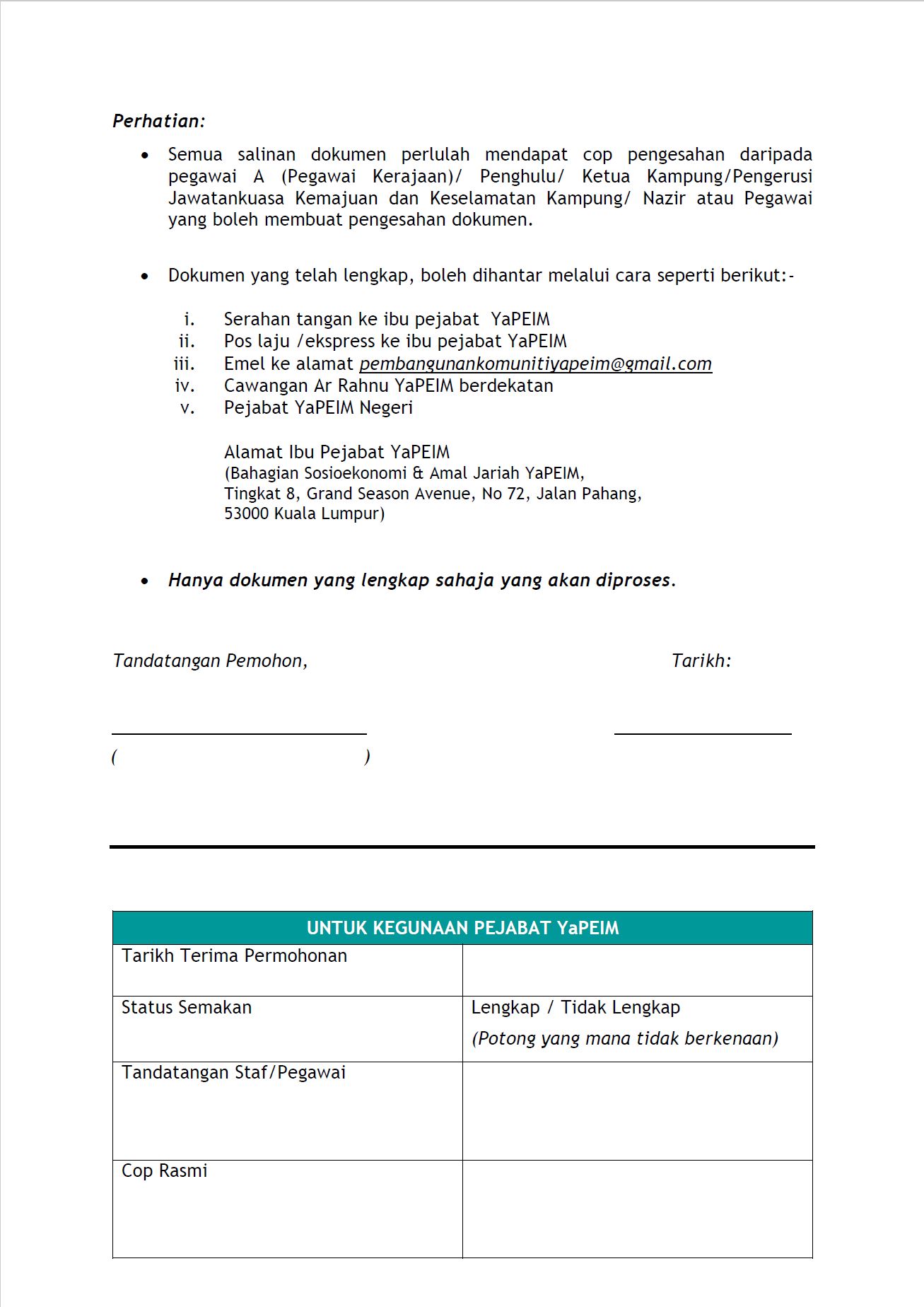Borang serta salinan dokumen lengkap bolehlah diserahkan kepada:
